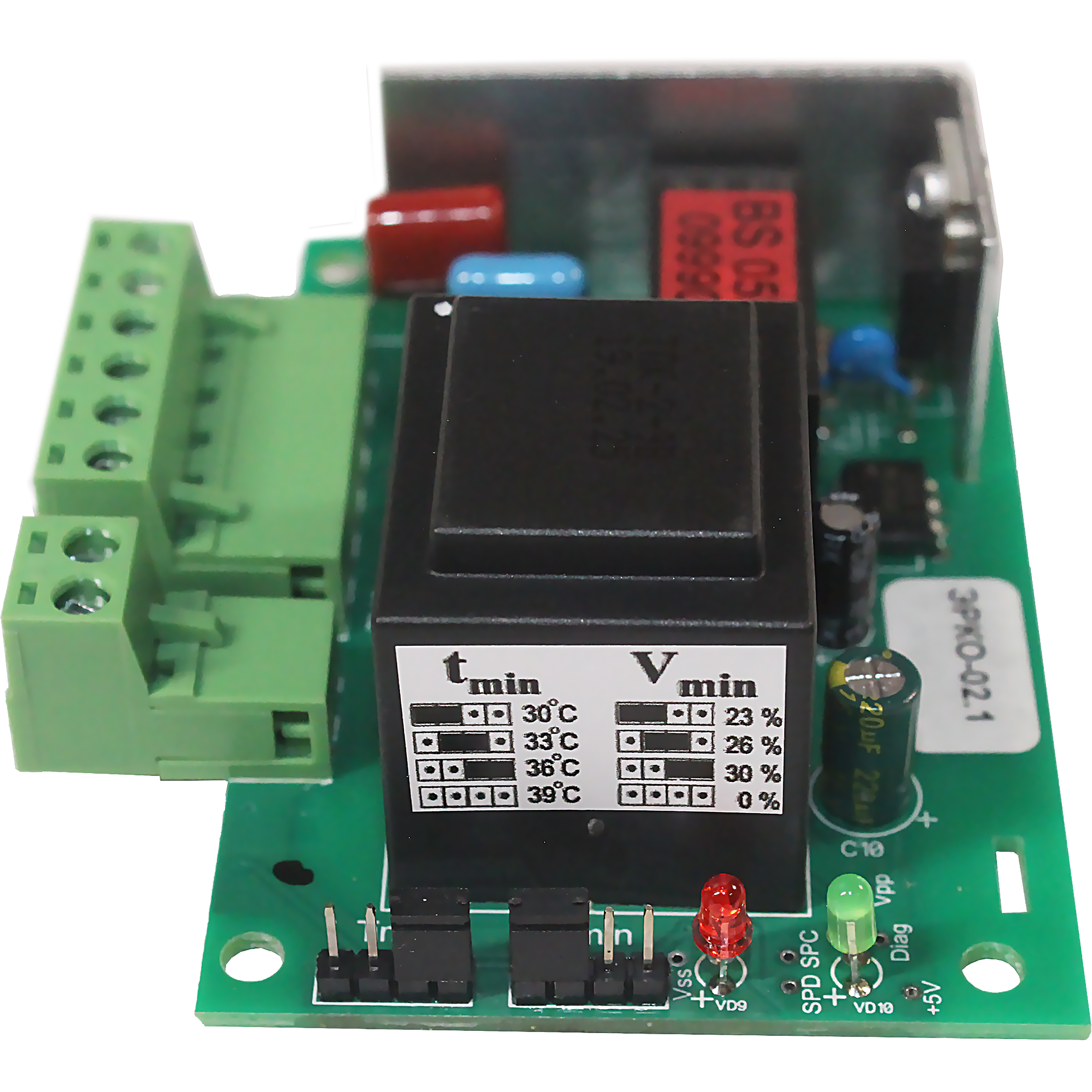 Регулятор скорости вращения вентилятора выпущен без корпуса, предназначен для работы в режиме охлаждения при отрицательных температурах наружного воздуха и устанавливается в кондиционеры (сплитсистемы) для зимней адаптации. Заводские установки в подавляющем большинстве случаев полностью обеспечивают стабилизацию давления фреона. Но при необходимости изменить пороги регулирования для более тонкой настройки системы можно с помощью перемычек на плате регулятора.