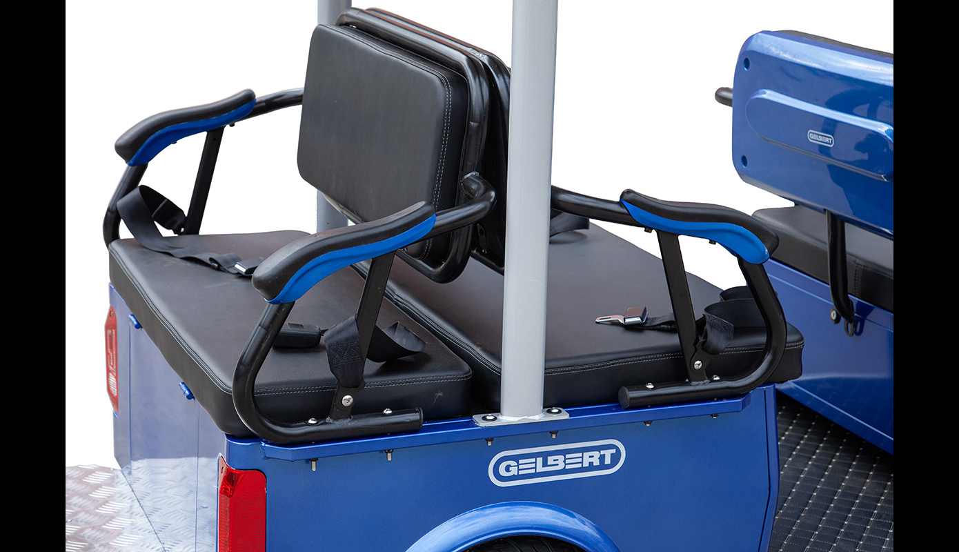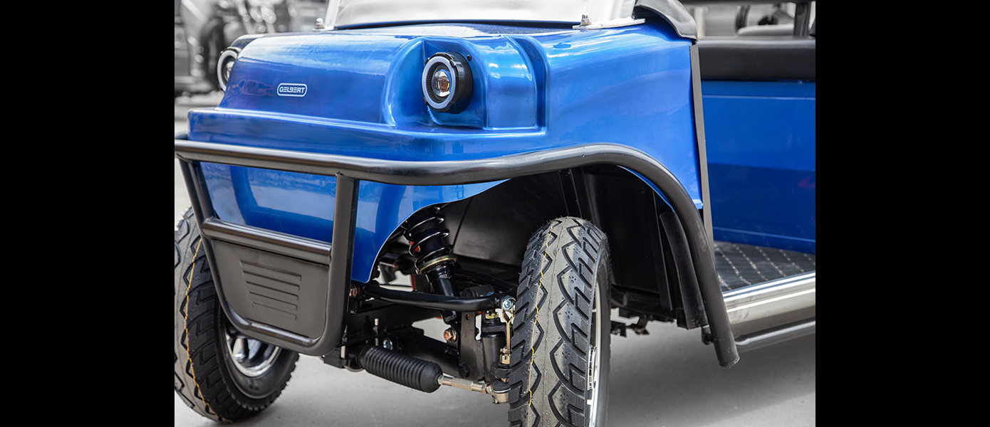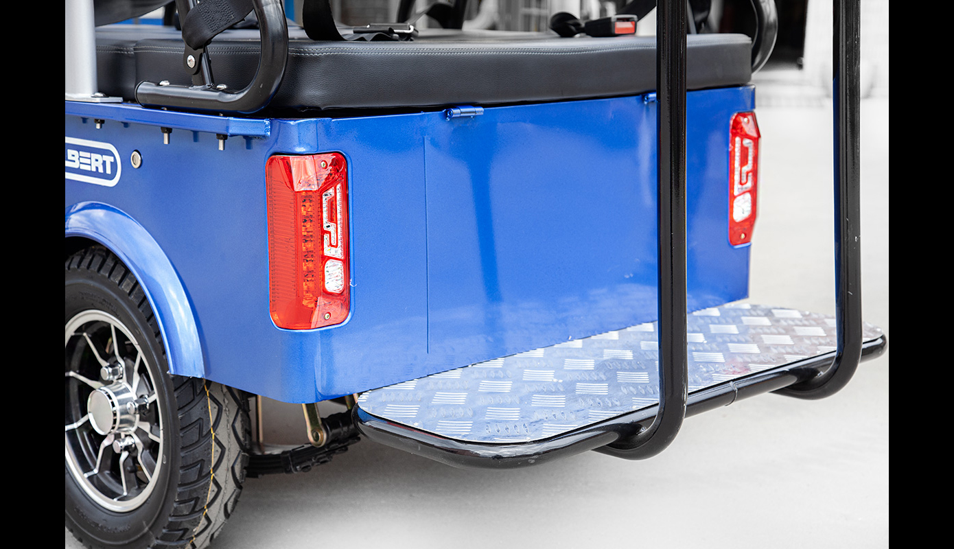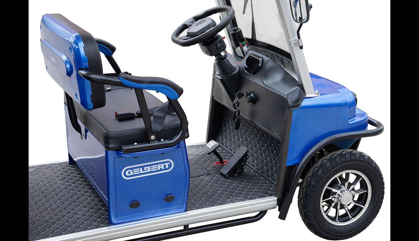 Представляем новый пассажирский электрический гольф кар мини Gelbert Sirma. Двигатель в этой модели обладает мощностью в 1200W. Вольтаж, на который рассчитан электрокар – 60V.