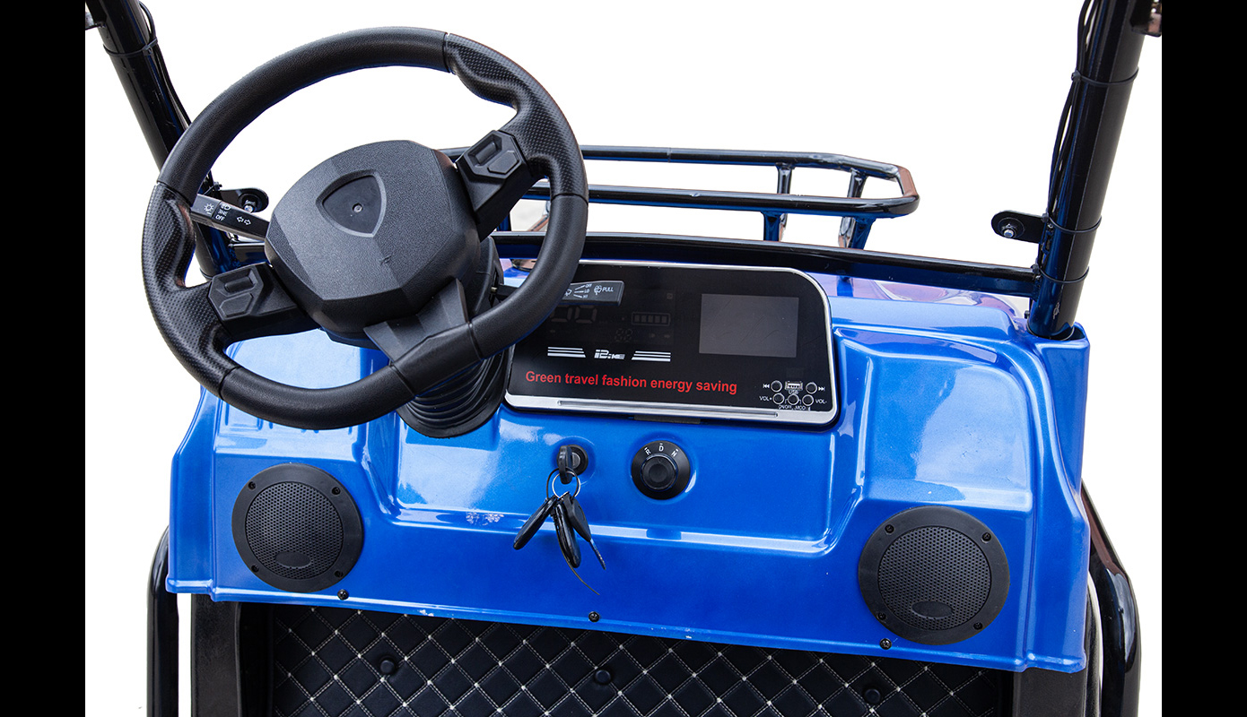 Представляем новый пассажирский электрический гольф кар мини Gelbert Venus. Двигатель в этой модели обладает мощностью в 1200W. Вольтаж, на который рассчитан электрокар – 60V.